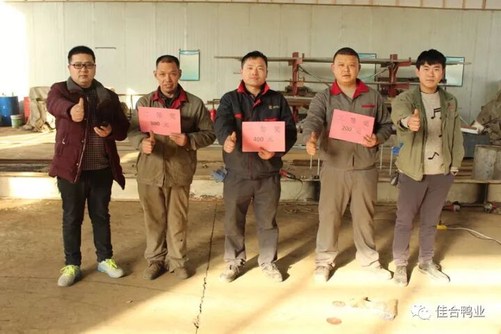 比賽完成後,參賽人員把自己的作品整齊的擺在地上,等待評委審評。評委們根據生産經驗,對撸毛夾的鋒利程度、順手程度等一一進行了審評。經過評委的仔細審評,最确定了名次,楊歡的作品以精美的外觀和使用方便獲得第一名,李欣華獲得第二名,梁帥獲得第三名。公司分别對其給予400元,300元,200元獎金。