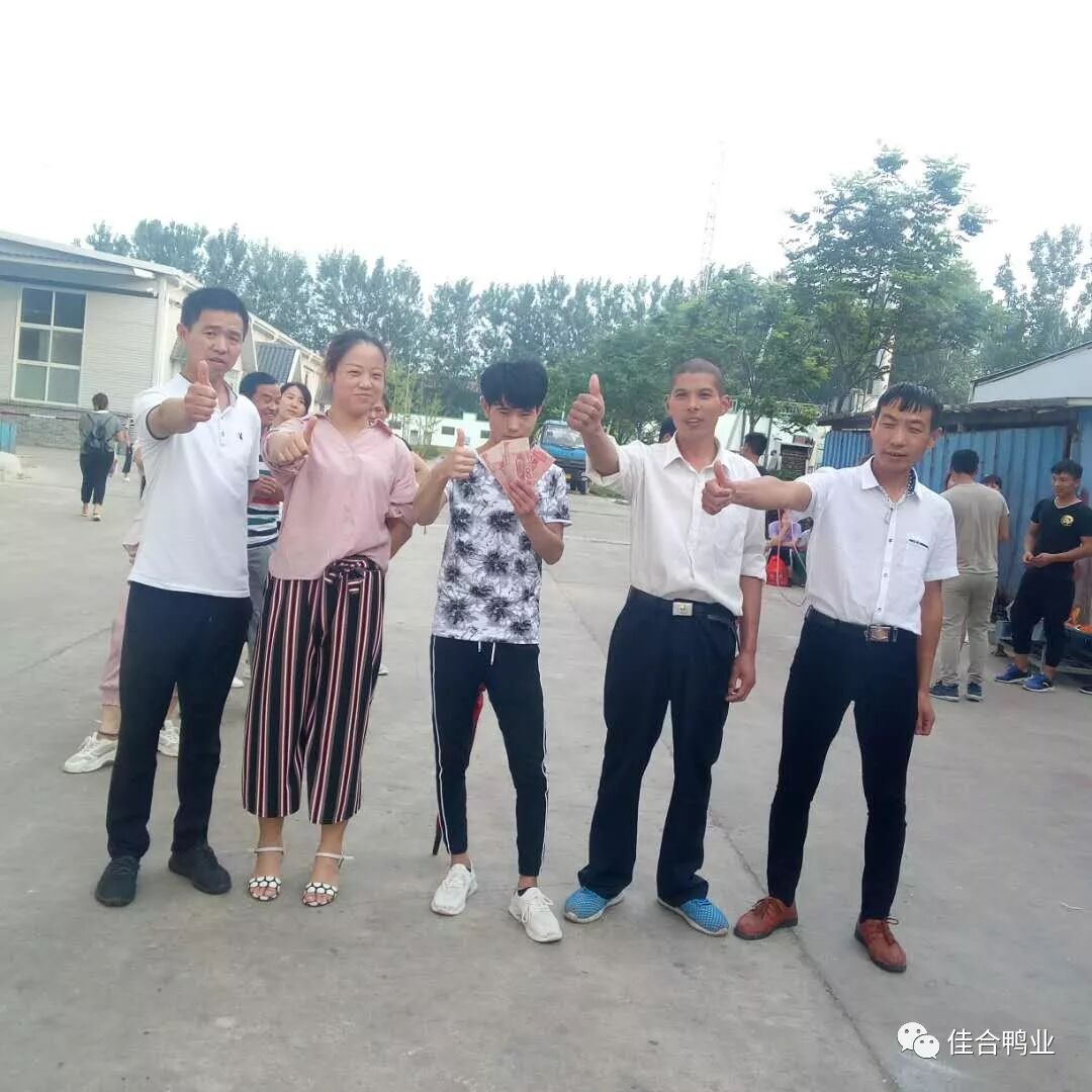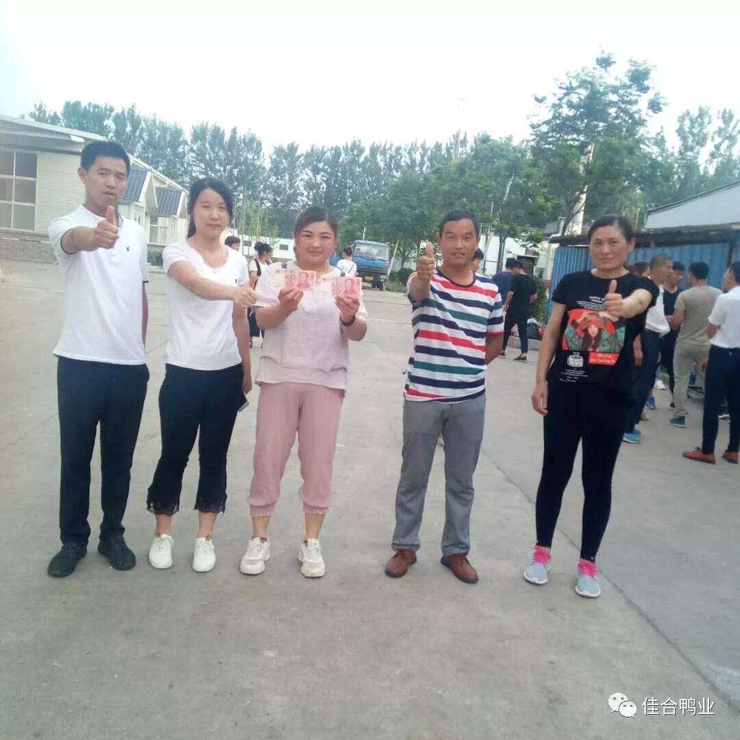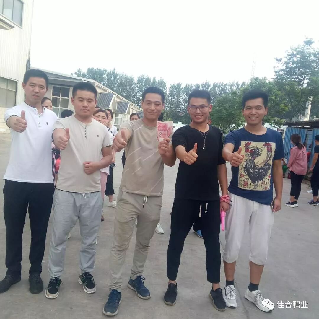 本次活動共分為四個組,每組四人,活動由加工四廠淨膛鴨副車間主任侯連山主持。計分方式為按個數計算,每組人員踢毽子或者跳繩的總數多者為勝。每個比賽項目評選出第一名和第二名,獎金分别為300元和200元。經過激烈的比拼,最終第一組和第三組取得了跳繩比賽第一名和第二名,第四組和第二組獲得踢毽子比賽第一名和第二名,公司現場為獲獎團隊頒發了獎金。