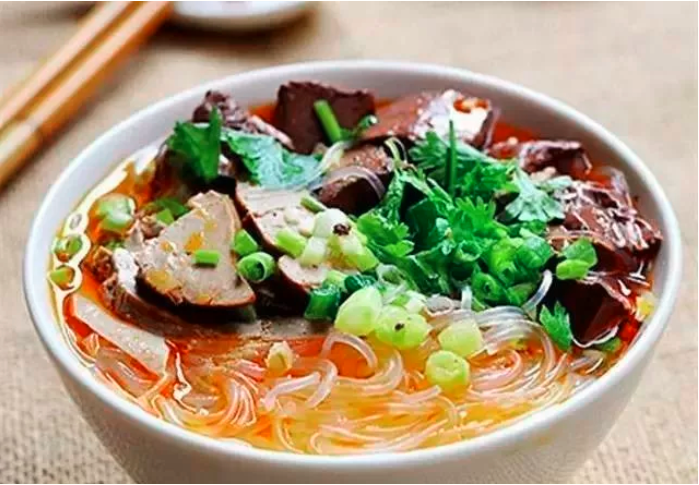 鴨血粉絲湯是南京著名的風味小吃,由鴨血、鴨腸、鴨肝等加入鴨湯和粉絲制成。不論是鴨湯的烹制,還是鴨血、鴨肝與鴨腸的制作,都采用的是傳統制作金陵鹽水鴨的方法,是金陵菜中重要的代表。以其口味平和,鮮香爽滑的特點,以及南北皆宜的口味特色,風靡于全國各地。