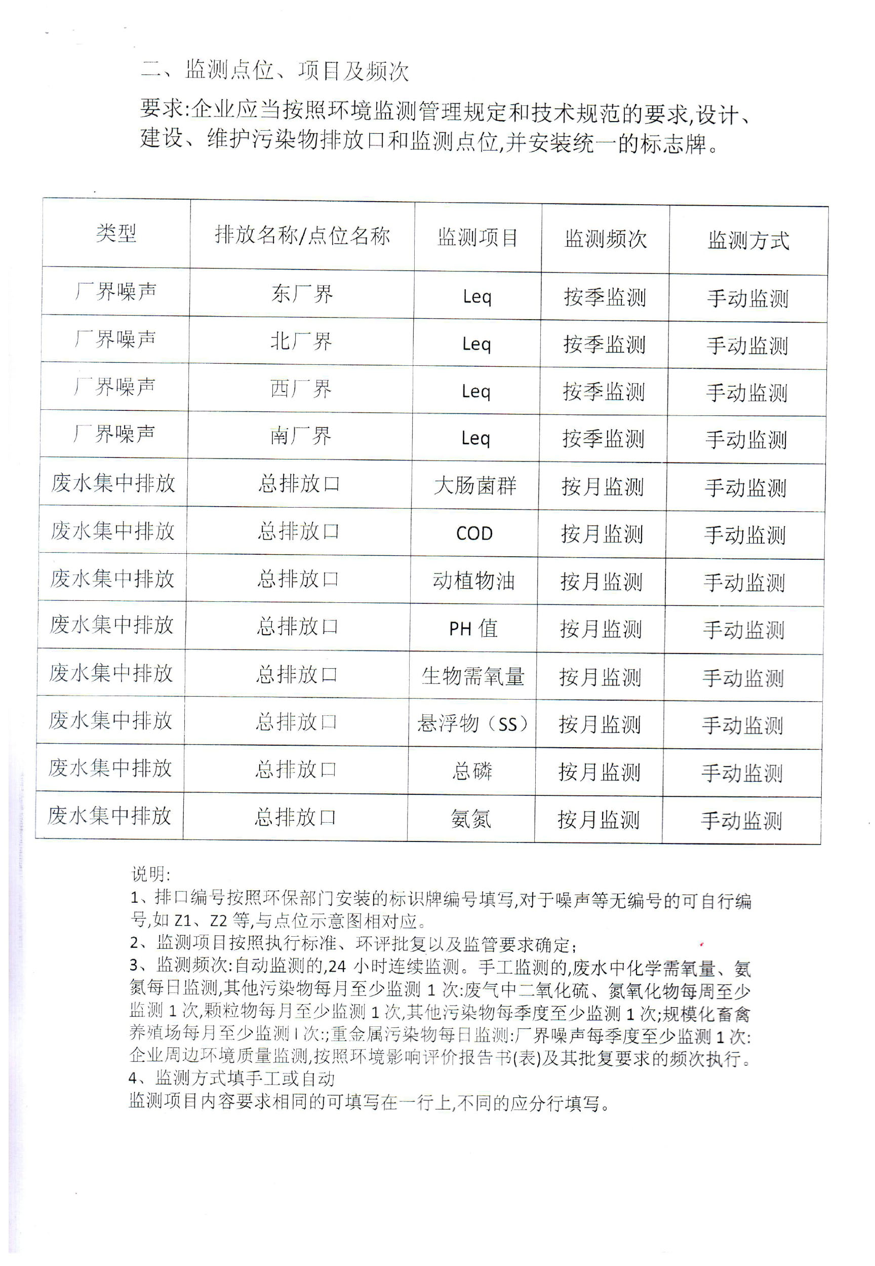 六、企業自行監測方案: