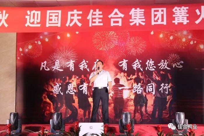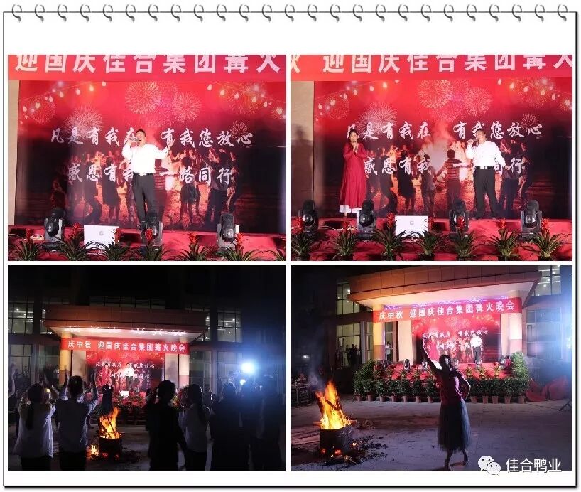 愛在佳合,展業路上奮進拼搏,情系佳合,共築未來共同夢想。金秋九月,為了進一步促進職工之間的交流,感受溫馨的佳合,中秋來臨之際我公司成功舉辦了“慶中秋,迎國慶”為主題的篝火晚會。佳合集團董事長謝總、常務副總張總,營銷副總杜總等公司高管以及全體後勤科室人員、生産部門管理人員參加了本次活動。