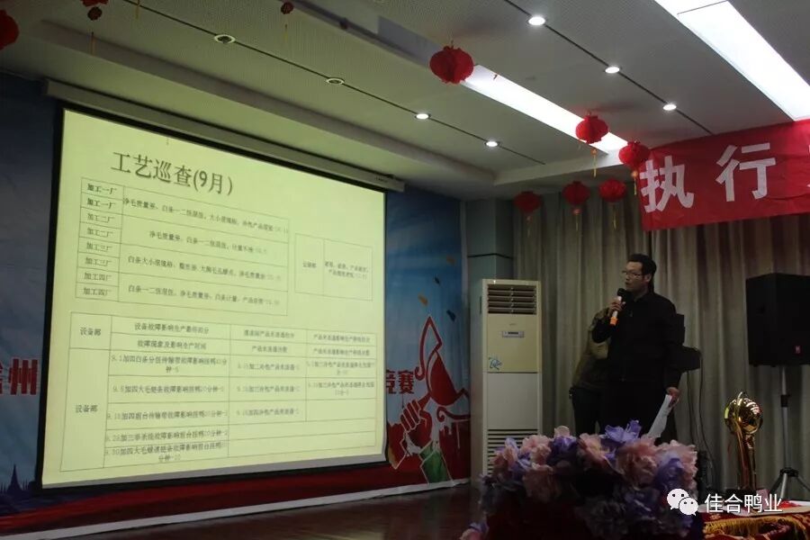 本次會議形式嚴肅、活潑,中間穿插着遊戲和抽獎環節,氛圍活躍。2018年,我公司依然緻力于打造公司執行力的綜合提升。八大巡查小組對公司執行力情況進行檢查、彙總、找出問題點并且責令改正。經過兩個月的檢查,最終,評比出表現突出的部門,職能部門維度是項目部(第一名),财務部(第二名),運營部(第三名),生産維度是加工四廠(第一名),生産輔助維度是品質部(第一名)。公司對獲得前三名的部門分别給予1500元,900元,600元的獎勵,并讓最後一名做出進步承諾。最後,常務副總張紹成對本次會議作出了總結,對執行力提升作出充分肯定。